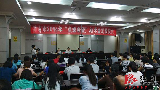 红网津市站9月1日讯(通讯员 邓超峰 刘北平 林石磊)8月29日上午,津市举行2014年“点燃希望”慈善助学金发放仪式,共为89名即将迈入大学校门的寒门学子发放助学金30万元,帮助他们圆了上大学的梦想。市政府副市长杨健全参加了此次活动。市政府副市长杨健全在讲话中对贫困学子寄予了殷切希望,寄语学子要把社会的关爱化为奋发学习的动力,在逆境中奋进,树立远大的理想,认真学习,积极进取,努力使自己成为国家的有用之才。
