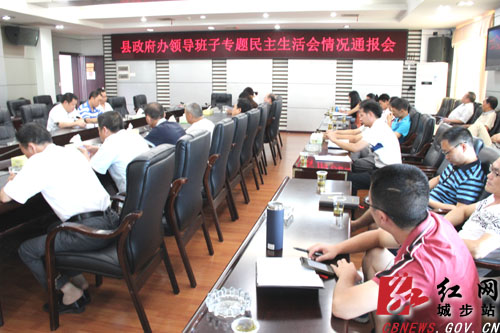 红网城步站9月4日讯(分站记者 刘令)9月3日下午,城步苗族自治县政府办召开领导班子党的群众路线教育实践活动专题民主生活会通报会,县委第四督导组到会指导。县政府办党组书记、主任张晓忠通报了民主生活会情况。县政府办领导班子于8月22日召开了领导班子专题民主生活会,县委督导组、县纪委、县组织部领导到会指导。此前,县政府办领导班子坚持时间服从质量,严格落实“五个不开会”,认真扎实做好了“组织学习讨论、广泛征求意见、开展谈心谈话、撰写对照检查材料”等会前准备工作。在充分征求各方意见的基础上,县政府办领导班子针对自身存在的问题进行了深入剖析,查摆了在遵守党的政治纪律规定、“四风”方面共17个问题,领导班子成员逐一作了对照检查,认真开展了批评与自我批评。在县政府办领导班子成员开展批评与自我批评之后,县委督导组、县纪委和县组织部有关同志对县政府办领导班子专题民主生活会进行了综合点评,认为县政府办领导班子专题民主生活会会风正,辣味浓,质量高,效果好,既有红脸出汗的严肃紧张,又有加油鼓劲的宽松和谐,达到了出汗排毒、醒脑治病、统一思想、凝聚共识、增进团结的目的。