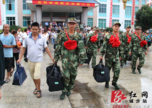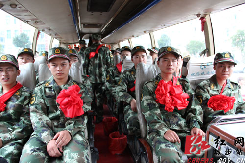 据悉,全县新兵将分6批运送,分别开赴海南、北京、黑龙江等地。首批新兵今晚抵达邵阳后,统一乘火车至长沙,在长沙与其他县市新兵集合后再乘新兵专列到达山东济南。