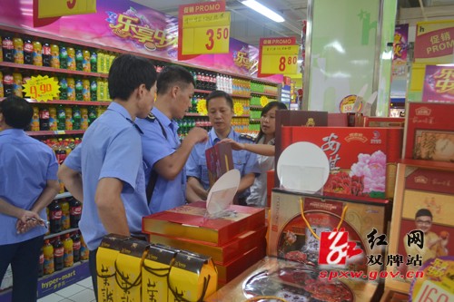红网双牌站9月5日讯(通讯员 姜丽芳 何恒 鲁兵)中秋佳节临近,种类繁多的月饼纷纷亮相市场,为防止“问题”月饼流入市场,确保消费者吃得放心,连日来,双牌县工商局组织执法人员对辖区月饼市场开展了专项检查。检查过程中,工商执法人员对县内超市、食品经营户、批发市场进行了全面检查。重点检查月饼的生产日期、保质期以及月饼的食品标签是否符合《食品安全法》的规定,包装上是否有厂名、厂址、QS标志等。同时查验经营者的进货台账、食品流通许可证、营业执照、检验报告。