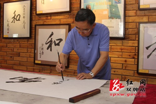 调研结束后,杨庆民还应邀为阳明山“和”字馆题写了“和”字。