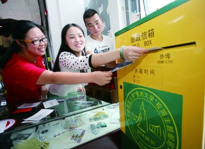 8月31日,天津师范大学“我的大学”校园主题邮局正式开业,主营邮政信函投递、校园慢递服务等业务。新华社 图