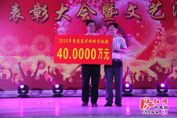 红网凤凰站9月10日讯(分站记者 麻正规 通讯员 吴玉辉 龙丽君 王华 卢志富) 9月9日晚,在第30个教师节来临前夕,凤凰县庆祝教师节表彰大会暨文艺汇演活动在县文化广场隆重举行。在活动中,该县对2013年至2014年度教育教学工作先进单位及个人进行了隆重表彰,共奖励奖金315.7929万元。