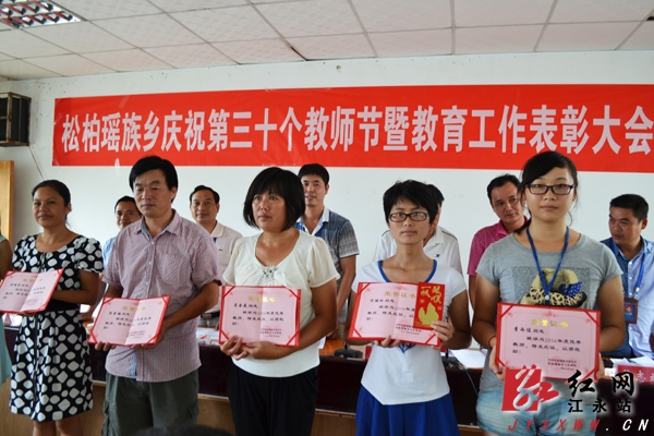 红网江永站9月10日讯(通讯员 田如瑞)9月9日,江永县松柏瑶族乡召开第30个教师节表彰会,为扎根瑶乡业绩突出的33名优秀教师颁发荣誉证书和奖金。松柏瑶族乡是江永县偏僻的乡镇,条件艰苦,80多名中小学教师安心瑶乡工作,满腔热情倾注在教学岗位上,在平凡的工作中做出不平凡的业绩。会上,松柏瑶族乡政府为12名优秀教师、10名优秀班主任、11名优秀教育工作者颁发荣誉证书和奖金。优秀教师代表作了典型发言,他们饱含深情的介绍自己在山区小学教书育人、为人师表、无私奉献的感人事迹,畅谈自己辛勤耕耘,无私奉献,播撒爱心的体会。受表彰的老师纷纷表示要热爱山区教育事业,静下心来教书,沉下心来育人,爱岗敬业,不辜负瑶乡人民的期盼。