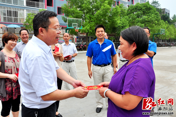 麻阳县委副书记、县长彭平安一行在县一中慰问退休教师和优秀中青年教师代表
