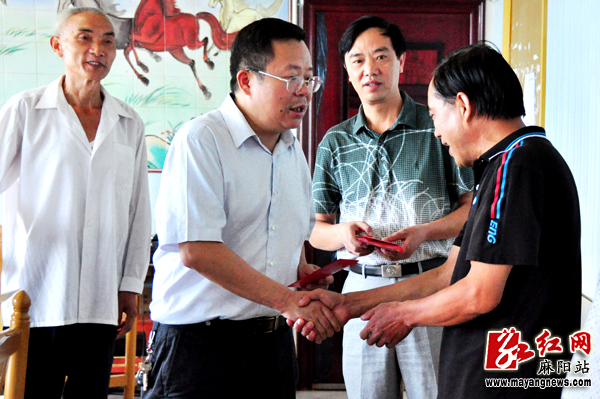 随后,彭平安一行来到县教育局原局长舒易胜的家中,与他亲切交谈,了解他的生活情况和身体状况。舒易胜在担任县教育局局长前,曾是国家模范教师,在江口墟镇中学、麻阳一中等学校从事过教育和行政领导工作,为麻阳教育事业的发展做出了杰出贡献。彭平安向他转达了县委、县政府对他的节日祝福,鼓励他继续发挥余热,一如继往地关心支持我县教育事业的发展。
