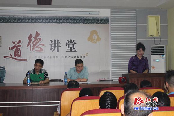 红网绥宁站9月10日讯(分站记者 向云峰 通讯员 肖菊荣 杨世武)为加大培育和践行社会主义核心价值观,更好地开展党的群众路线教育实践活动,进一步增强机关党员干部的思想道德建设水平,9月9日,绥宁县文广新局举办了以“爱岗敬业、乐于奉献”为主题的道德讲堂活动。这是今年该局举办的第四期道德讲堂活动。本期道德讲堂活动共分唱歌曲、学模范、诵经典、谈感悟、送吉祥五个环节。伴随着振兴人心的音乐,全体与会人员起立,高唱《没有共产就没有新中国。本次道德讲堂宣讲人、县文物局局长向先忠讲述了党员干部的模范、原云南保山地委书记杨善洲和“全国五一劳动奖章”获得者、县公路管理局养路工龙运跃的感人事迹。随后,全体人员一起高声诵读了韩愈《进学解》中的一段经典:“业精于勤,荒于嬉;行成于思,毁于随”。重温经典,让该局干部职工进一步认识到只有勤勉进取、敬业奉献,才能有所成就。