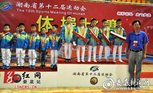 在本届体操比赛中,记者了解到湘潭代表队共派出19名队员参加,其中,年纪最大的9岁,最小的不到6岁。尽管年纪小,但小家伙们个个奋勇争先,信心十足。其中,队员苏歆童在赛前一天一度高烧达39℃以上,但她仍不愿放弃,带病出战,依然取得了女子丙组7岁组个人全能第7的好成绩。“没有为湘潭代表队拿到奖牌,她还挺不高兴,但在我们眼中,她已经是最棒的了。”妈妈李佳为女儿的表现骄傲。
