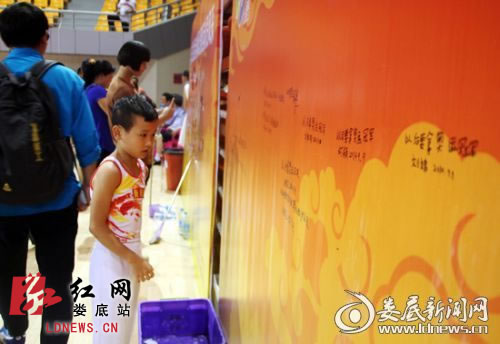 红网娄底站9月11日讯(分站记者 刘建安)“以后要拿奥运冠军!”9月10日,湖南省第十二届省运会体操比赛在娄底新体育馆顺利落幕。赛后,不少选手纷纷在寄语墙上留言。当天共决出24枚金牌,其中长沙代表队收获10枚金牌,成为最大“赢家”。本届省运会青少年组体操比赛分男子甲组(11—12岁)、女子甲组(10—11岁)、男子乙组(9—10岁)、女子乙组(8—9岁)和男子丙组8岁组、女子丙组7岁组、男子丙组7岁组、女子丙组6岁组年龄组别,共11支代表队141名运动员参赛。