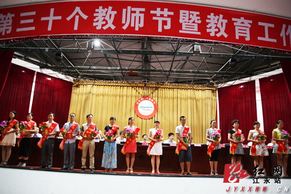红网江永站9月11日讯(分站记者 任泽旺)9月10日上午,江永县召开庆祝第三十个教师节暨教育工作表彰大会,表彰优秀教师,奖励教育教学先进单位。会议由县委副书记张建坤主持,县委副书记、县长唐德荣作教育工作报告,县委书记冯德校作重要讲话,县人民政府副县长谭美池宣读表彰决定。县领导黄智亮、刘忠华、杨复权、陈小平、杨健、秦远林、杨诚、卢文庆、蒋俊善、王克贤在主席台就座。