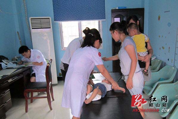 湘潭市妇幼保健院李灿明医师为儿童做体检。