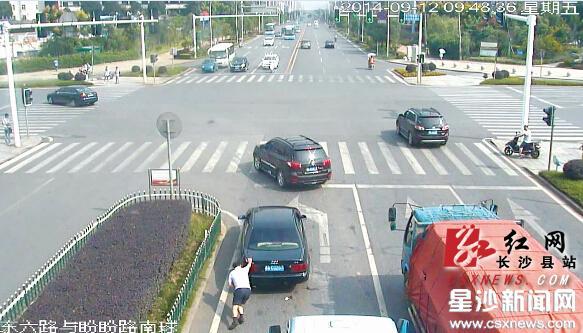 红网长沙县站9月15日讯(星沙时报记者 张兴莎) 车辆路口处抛锚,挡着其他车辆的同时驾驶员自己也着急,这时一位热心市民向其伸出了援手。12日上午,记者在长沙县交警大队的路面监控视频中看到了感人的一幕,一位先生顶着烈日帮助无助的驾驶员脱离了“困境”。