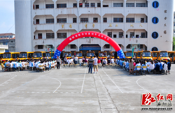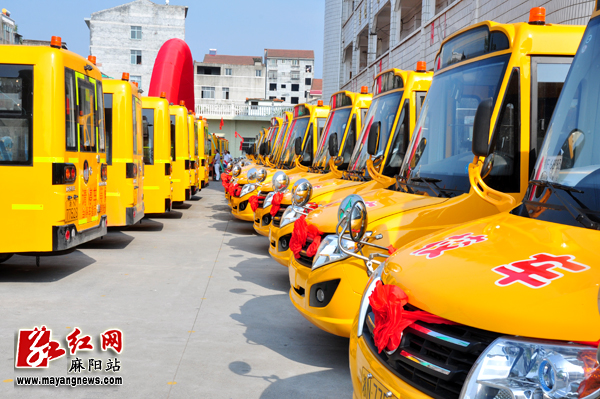 近年来,随着麻阳县中小学网点布局的不断优化和农村九年一贯制学校的建成使用,学生上下学交通问题摆上了麻阳县县委、县政府的重要日程。通过多方的调研考察,麻阳县成功招商东风襄阳旅行车公司,委托其投资监管校车服务。9月12日当天在麻阳县拖冲、栗坪、岩门等9个乡镇正式投入使用的40辆新校车,将切实解决这些乡镇2400余名农村学生上下学乘车难的问题。同时,新增添的校车上装有摄像头,能够第一时间向营运公司反馈车内情况。车上配有医药箱、灭火器等,便于在途中出现问题时的应急抢救,最大限度地为孩子们提供安全保障。