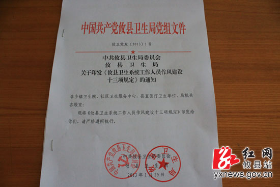 在卫生系统内部管理上,县卫生局颁布了《攸县卫生系统工作人员作风建设十三项规定》。据统计:十三项规定颁布后卫生系统内部共处罚违纪人员6人,处罚违反医疗行为、违规转诊、过度医疗等损害群众利益行为11人。