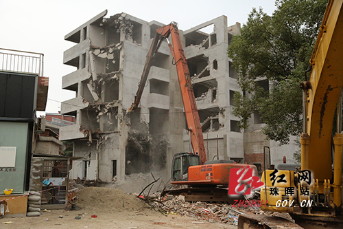 此前,珠晖区委、区政府组织区控违拆违执法大队、规划、国土、乡镇等单位多次进行劝阻,下达相关法律文书,反复宣传政策法律,动员其自拆。2013年5月,珠晖规划分局对此立案查处,市城乡规划局同年7月下达了行政处罚决定书要求。但涂某没有拆除违法建筑,还继续加建。今年9月,区委、区政府先后两次与涂沟通,无果。9月17日,区委副书记、区长陈礼洋主持召开拆违调度会,成立拆违临时指挥部。