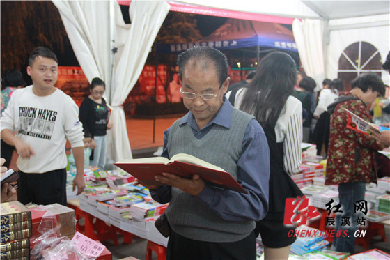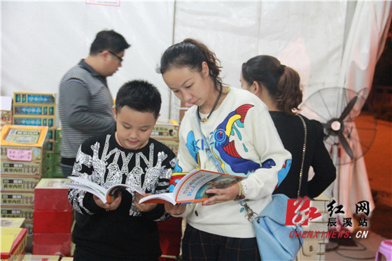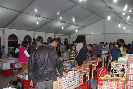 红网辰溪站9月22日讯(分站实习记者 陈菲菲)9月21日是辰溪首届正版精品图书普及惠民助学活动开展的第六天,当晚7点,记者来到县城防洪堤附近的书展现场,看到用帐篷临时搭建的30多平米的展厅里挤满了前来购书、看书的市民,不少“书虫”捧着一本书在书架间的过道里就聚精会神地看了起来。现场工作人员告诉记者,书展的营业时间是上午8点到晚上10点,晚上7点以后是一般家庭吃过晚饭后的休息时间,这段时间也是书展人流量最密集的时候,加上当天是周末,所以光顾书展的人就更多了。