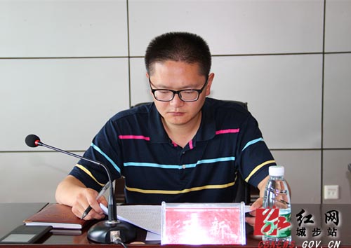 图为副县长王新主持会议。