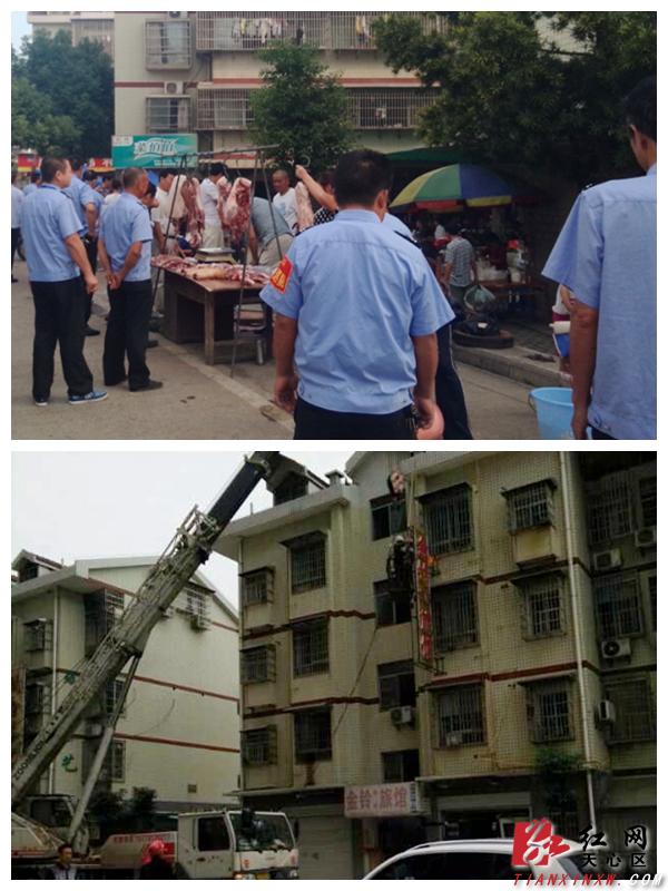 红网天心站9月25日讯(通讯员 杨慧)长沙市天心区新开铺街道石人村金石蓉园小区作为安置小区,周边楼盘较多,物业管理相对滞后,小区内自发形成了一个马路市场横贯其中,由此带来的卫生差、店外经营、违规搭建现象越来越多,群众时有反映。为贯彻落实市委、市政府关于实施“最严格、最精细、最到位”城市管理的指示精神。街道工委、办事处经过深入调查了解和多次座谈探讨,于8月29日下午16:00召开专题会,部署石人村金石蓉园安置小区脏乱差整治工作。从9月1日起连续整治25天,由街道办事处分管主任带队,城管执法中队、城管办、石人村相关负责人、物业公司、城市协管员共150余人,对石人村金石蓉园安置小区全面开展“最严城管执法”行动,出动3台吊车对金石蓉园小区的各类违规现象和违章搭建进行了强力整治,现场劝导制止店外经营65余处,发放整改通知200份,拆除违章广告100余处,勒令其他违章建筑户主现场表态限期自行拆除。此次行动对于金石蓉园安置小区这类城市管理维护意识淡薄的重点地带起到了很好的宣传教育效果。