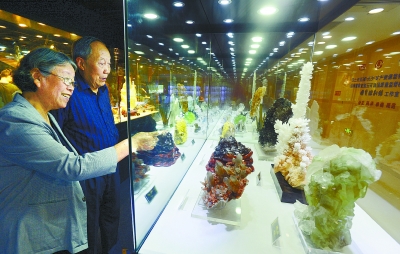 图②9月24日,长沙市民在国货馆内参观矿物晶体展。