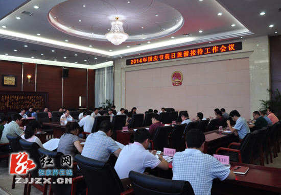 会议就认真做好2014年国庆节假日的旅游交通安全、市场监管、旅游服务等旅游接待工作进行全面部署。会议要求各区县、各单位要把握关键环节,牢固树立“安全是旅游的生命线,没有安全就没有旅游”的责任意识,把旅游安全放在第一位,落实安全责任制,切实抓好旅游交通安全、游览安全、食品安全、治安安全、住宿安全等工作,确保假日旅游服务质量,提升旅游服务水平。