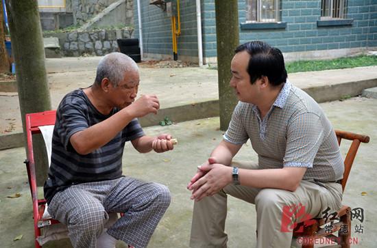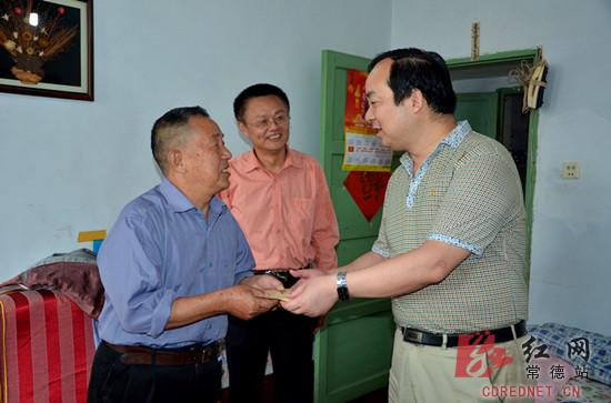 常德市工伤保险处主任毛泽陆为老工伤职工宁师傅送去慰问金