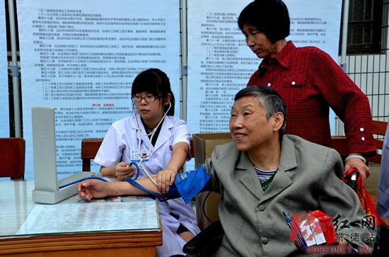 据了解,常德市人社部门在开展“党的群众路线教育实践活动”的过程中,了解到常德纺机公司居住着很多退休的老工伤职工,这些职工由于年迈体弱、收入低微,不少职工生活面临困难。常德市工伤保险处干部职工来到该公司,为工伤职工送医送药,宣传、