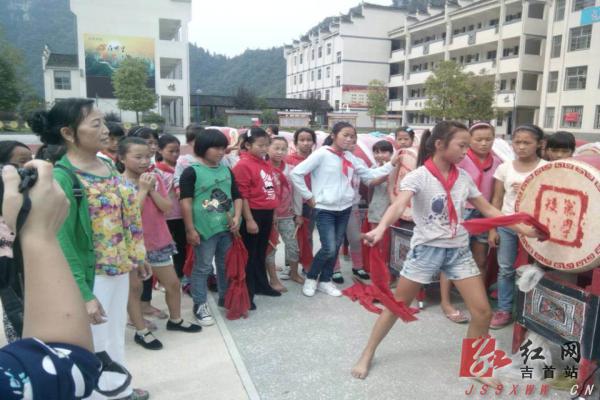 9月24日上午10点,湘西苗家第二代“女鼓王”、国家级非物质文化遗产项目《湘西苗族鼓舞》最具代表性的传承人石顺民来到矮寨镇民族完小,对学生鼓队的鼓舞训练进行技术指导。经过孩子们半个月的辛苦排练,训练成果突出。