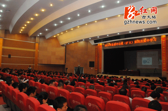 红网古丈站9月26日讯(通讯员 覃勋)9月25日,古丈县委中心组(扩大)举行2014年第四次集中学习,县委中心组成员,县直科局级单位班子成员,乡镇党委书记、乡镇长,副科级独立机构负责人和驻县的中央、省、州属单位主要负责人以及科干班学员、部分县直机关网评员共500余人参加会议。