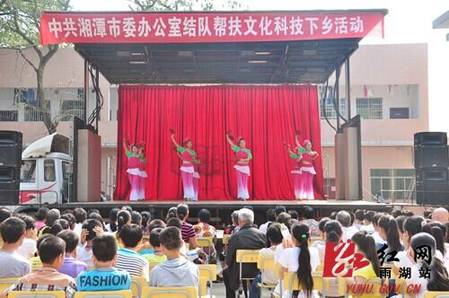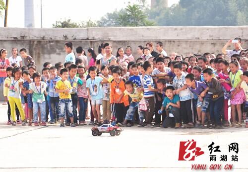 红网雨湖站9月28日讯(分站记者 谢岳峰) 9月28日上午,湘潭市委办公室结对帮扶文化科技下乡活动走进了雨湖区姜畲镇黄石村塔岭中学。在这里,航车模展览、文艺表演、现场书画写作等一系列活动同步举行,一时间,校园内陷入一片欢快的海洋。湘潭市委副秘书长刘曙强,市委办工会主席肖均其,雨湖区委常委、区委办主任颜炬及市直机关工委、市文明办、市科协等单位负责人出席活动。
