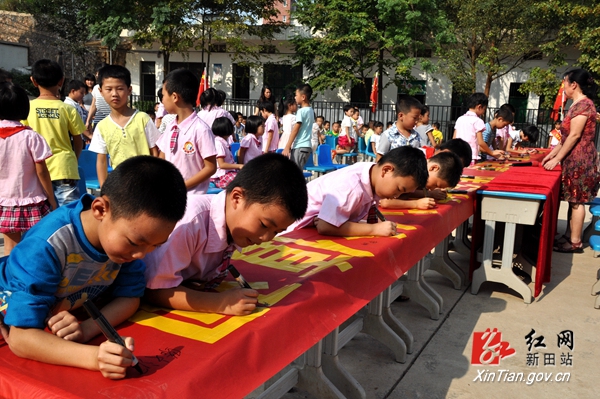今年9月是国家确定的第11个“中小学弘扬和培育民族精神月”,该校按照通知精神开展了此次活动。活动将持续到10月底,以“爱国、文明、友善,践行核心价值观”为主题,立足学校实际,以爱国主义精神为核心,以中华民族美德和革命传统教育为重点,通过开展一次国旗下讲话、一次现场宣誓签名、一次主题班会、一次演讲比赛、一次板报比赛、一次绘画比赛和一次主题讲座等系列活动,教育引导学生进一步弘扬爱国主义精神,坚定理想信念,增强民族自尊心、自信心、自豪感以及科学创新意识,并将其转化为具体行动,立志为实现中华民族伟大复兴的中国梦而发奋读书。