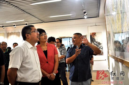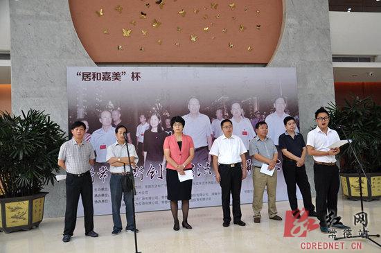 红网常德站9月28日讯(分站记者 黄刚) 9月28日,为庆祝新常德新创业“三改四化”一周年,“居和嘉美”杯常德市书法美术摄影大赛优秀作品展今天在常德文化馆正式开幕。市委常委、宣传部长刘进能宣布开幕。副市长陈华,常德市文联主席王军杰,以及获奖作品创作者等出席活动。