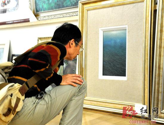 一位市民真专注欣赏画展。