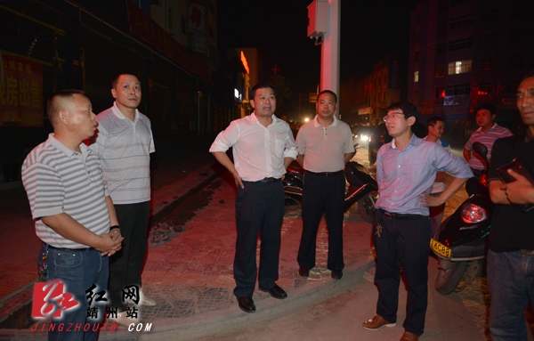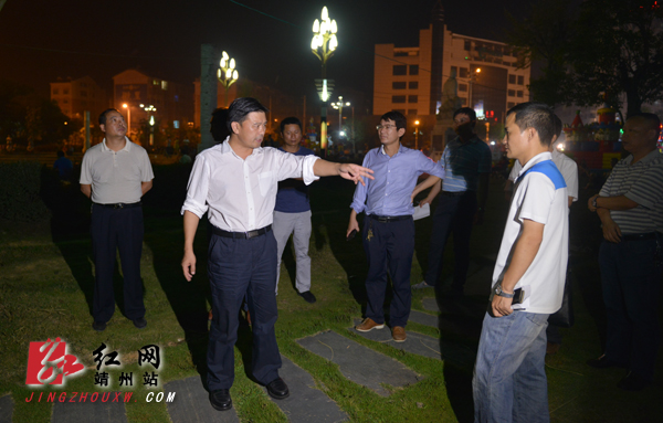 红网靖州站9月28日讯(分站记者 龙本亮) 9月26日晚上,靖州县委书记钦代寿带领县城管局、路灯公司负责人先后来到建国桥转盘、打油街、飞山广场、土桥街、怡园等路段及背街小巷、公园等现场,就路灯的添置、更换、维修进行现场调研,县委常委、县委办主任周文祥,县委督查室王军陪同调研。