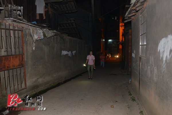 打油街市民晚上出行用手机电筒照明