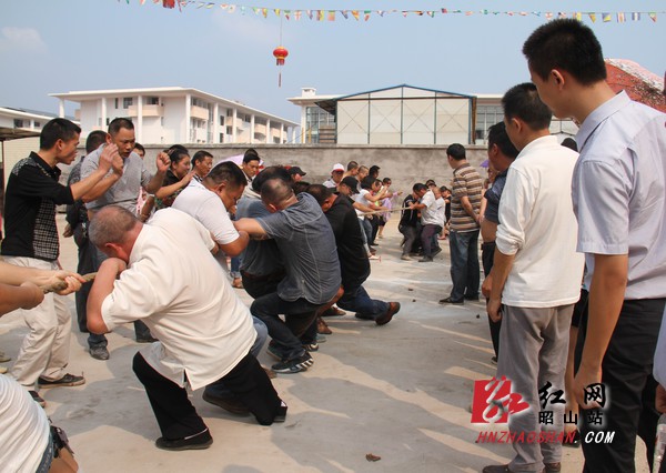 红网昭山站9月28日讯(分站记者 刘姝婧) “加油,加油……”9月27日,昭山昭祥新城“工友之家”院子里人声鼎沸,欢呼声、加油声连成一片,易家湾镇新湖村2014年第二届村民拔河比赛在这里精彩上演。
