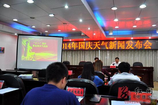红网常德站9月29日讯(分站记者 黄刚)9月28日上午,常德市气象局召开“十一”黄金周天气趋势预报新闻发布会。市局气象台副台长胡振菊发布了今年国庆黄金周天气预报。今年国庆长假期间,常德市以多云天气为主,最高气温26℃至29℃,适宜出行旅游。据最新气象资料分析:常德市天气总体偏好,降水过程少强度弱,气温适宜,空气质量良好,人体感觉舒适,其中1日、4日前后、7日有分散性阵雨过程,此外,4日开始,气温呈逐日小幅下降趋势。