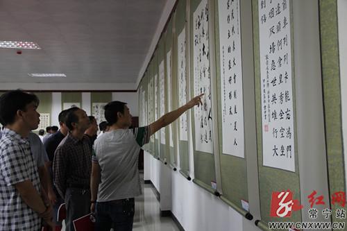 作为常宁市人大常委会庆祝人民代表大会成立60周年大型系列活动内容之一的书法展,从筹备到今日开展迎客,历时近两个月的筹备,所有书法展出均出自市、镇人大代表及书法爱好者之手,一幅幅书法作品笔力苍劲、气势如虹,神韵十足,吸引了众多书法爱好者和群众前来观赏。