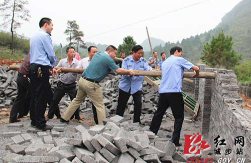 红网城步站9月30日讯(分站记者 黄艳萍) 9月30日,城步苗族自治县儒林镇组织相关执法人员和干部职工,对双井村铜盆井一处违章违法建筑进行依法拆除,有效打击非法侵占耕地、违法建筑的歪风。