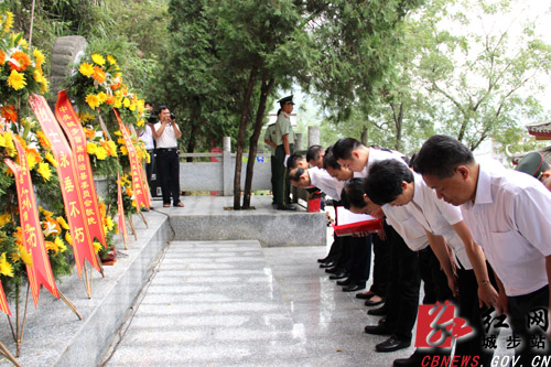 县领导向红军烈士墓致三鞠躬。