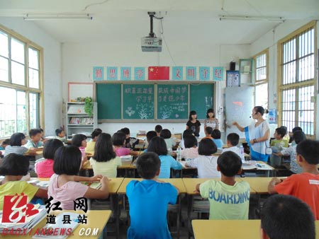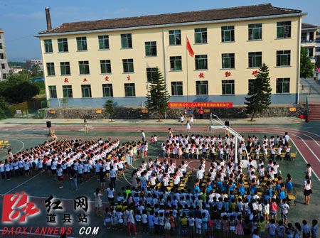 红网道县站9月30日讯(通讯员 文/周华 张富云 图/何上进)9月29日,在新中国成立65周年到来之际,道县县委宣传部、县文明办、县教育局等部门联合开展的“向国旗敬礼”活动在道县朝阳小学启动。在全县各中小学校开展的“向国旗敬礼”系列活动,将通过“国旗下的讲话”、“迎国庆、祖国在我心中”诗歌朗诵比赛、“做一个有道德的人”征文比赛、“我做文明小使者”主题班会、“网上签名寄语”等多种形式,让孩子们通过喜闻乐见、易于参与的活动来充分表达祝福祖国、共筑中国梦的美好心声。