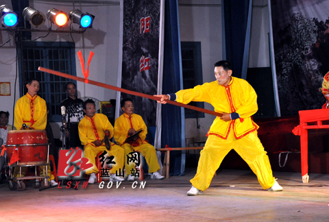 晚会在一组气势恢宏的大合唱《四渡赤水》和《共产党好共产党亲》中拉开帷幕。整台晚会由蓝山县老年大学和各乡镇文艺代表队轮番上场“打擂”。老年大学率先登台,表演了极富传统特色的民族乐器演奏《瑶家春梦》和欢快喜庆的表演唱《欢乐婆婆逛三蓝》。接着新圩镇代表队和大洞代表队轮流“攻擂”,拿出了时尚拉风的广场舞《火红的爱情》和乡村环境整治情景表演《义务环卫员》,紫良乡文艺队拿出了幽默诙谐的民间传统艺术表演《舞狮》。眼看乡镇文艺队节目新颖、人气大有赶超之势,蓝山县老年大学的艺术爱好者们又使出杀手锏,表演了曾在全国获奖的经典民间歌舞《喜烛舞》和功底深厚的拳术表演《花样太极拳》,现场欢呼声、掌声四起,为老年艺术家们老当益壮、老有所乐喝彩。