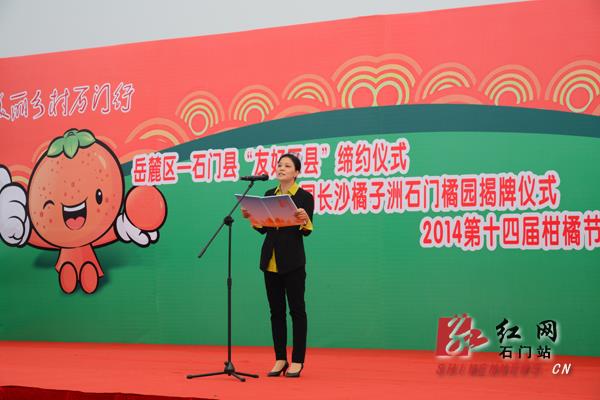 红网石门站10月13日讯(分站通讯员 李飞)10月11日—12日,2014“美丽乡村石门行”系列活动在长沙橘子洲浓情启幕。笔者从11日晚举行的“美丽乡村石门行”新闻推介会上了解到,该系列活动有“石门传(船)说传三湘”、“石门橘红橘子洲”、“橘红茶香自在夹山”、“欢乐橘园碧玉秀坪”、“土家人的生态美食”、“石门柑橘走天下”六大板块,活动主题突出“石门橘子红了、请喝一碗石门茶、茶山橘海•最美石门”。其中,12日上午举行的长沙岳麓区与常德市石门县缔结友好区县签约仪式,更成为本次橘子洲头活动最大的亮点。
