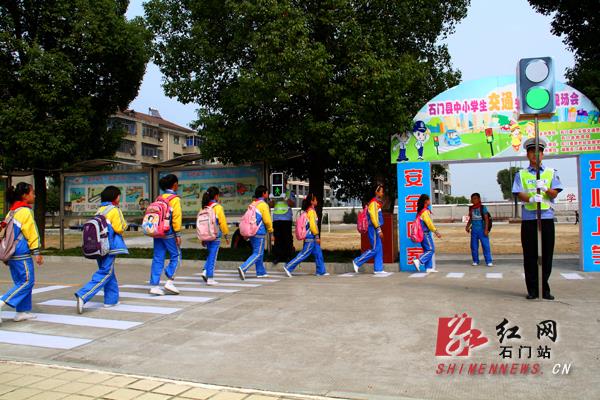 红网石门站10月14日讯(通讯员 刘宏)10月13日下午,石门县中小学生交通安全演练现场会在新世纪实验学校召开。本次演练活动由石门县公安局交警大队、石门县教育局联合主办,石门县新世纪实验学校承办,湖南石门通达联运有限责任公司协办。石门县各乡镇中心学校及澧澜中学、石门三中分管安全副校长,石门县交警大队各中队中队长、新世纪实验学校部分家长及学校三、四年级全体学生等800余人参加。