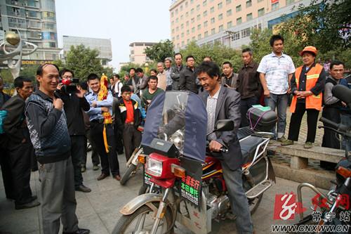 10月14日上午,常宁市公安局在常宁市东风广场举行了公开退赃大会,为群众退回小汽车3辆,摩托车、电动车12辆,手机2部,项链4条,现金221562元。