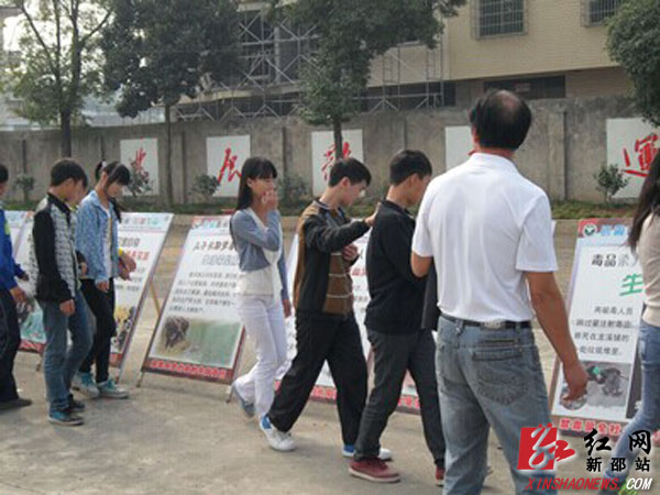 红网新邵站10月22日讯(通讯员 杨卫军 石蓉蓉)10月20日上午,在新邵县严塘中学的操场上,全校师生以班级为单位排着整齐的队伍,井然有序的参观着学校举办的禁毒教育图片展览活动。