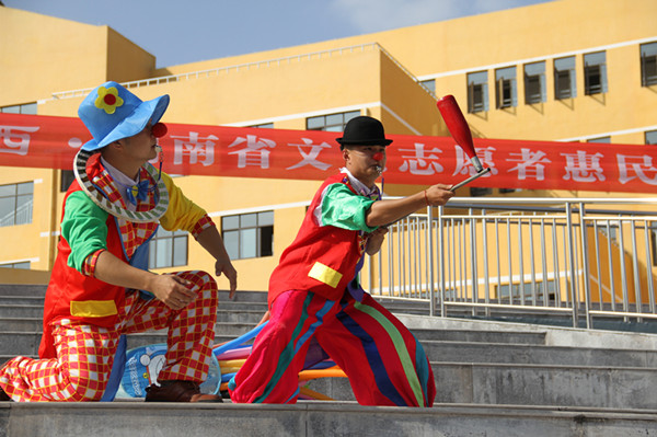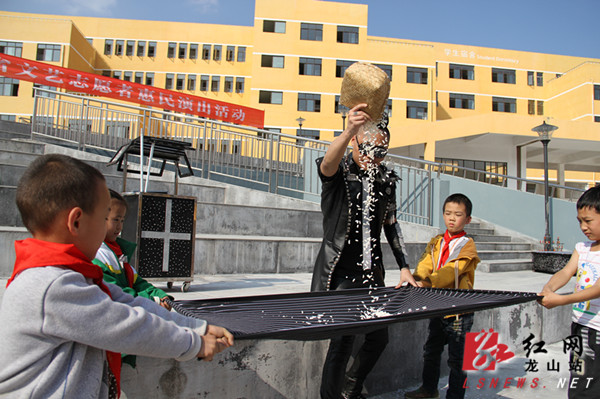 红网龙山站10月23日讯(分站记者 胡域 通讯员 余敏)10月22日,省文联组织文艺志愿者来到县思源实验学校开展“走进湘西”惠民演出活动,精彩的魔术、杂技等表演博得了2000余师生的热烈掌声。