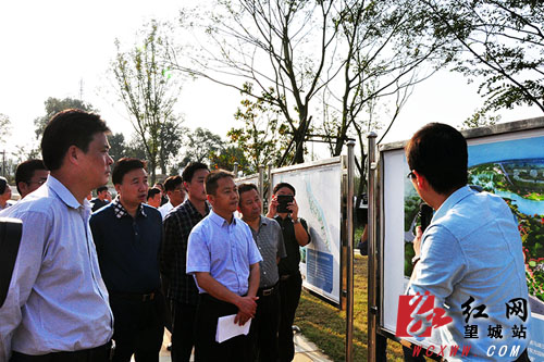 茶陵县党政代表团正在了解斑马湖东湖湿地公园建设情况。高亮 摄