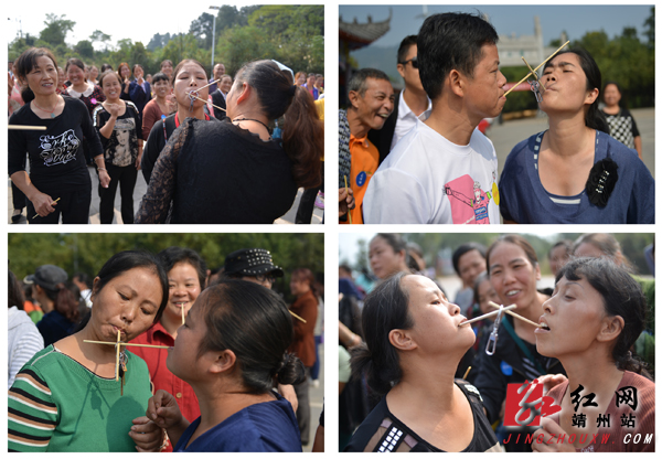 “嘴咬竹筷传钥匙”趣味活动 龙本亮 摄影