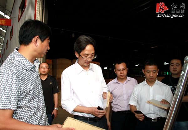 调研组在闽新板材生产车间查看
