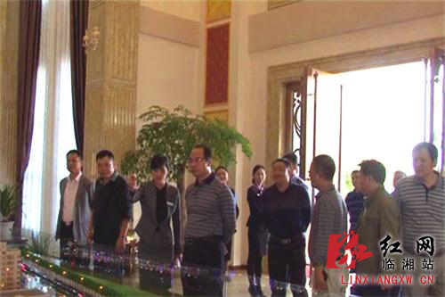 临湘市委副书记、市长龚卫国(中)在查看沙盘
